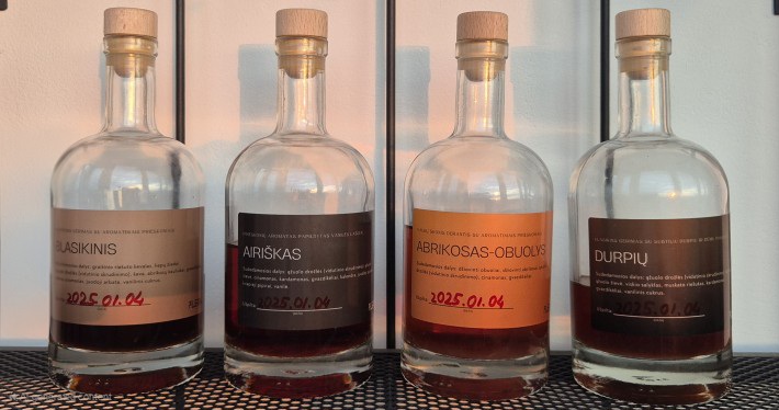 Kiekvienas buteliukas turėjo savo charakterį: viename – klasikinis, kitame – airiškas, o trečiajame – abrikosų ir obuolių, o paskutiniame durpių ir ąžuolo drožlių derinys.